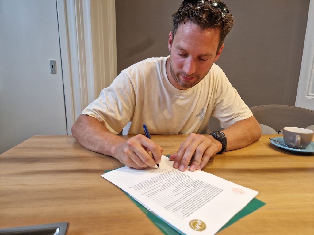 Bij de notaris voor een extra stuk tuin in Juni 2025